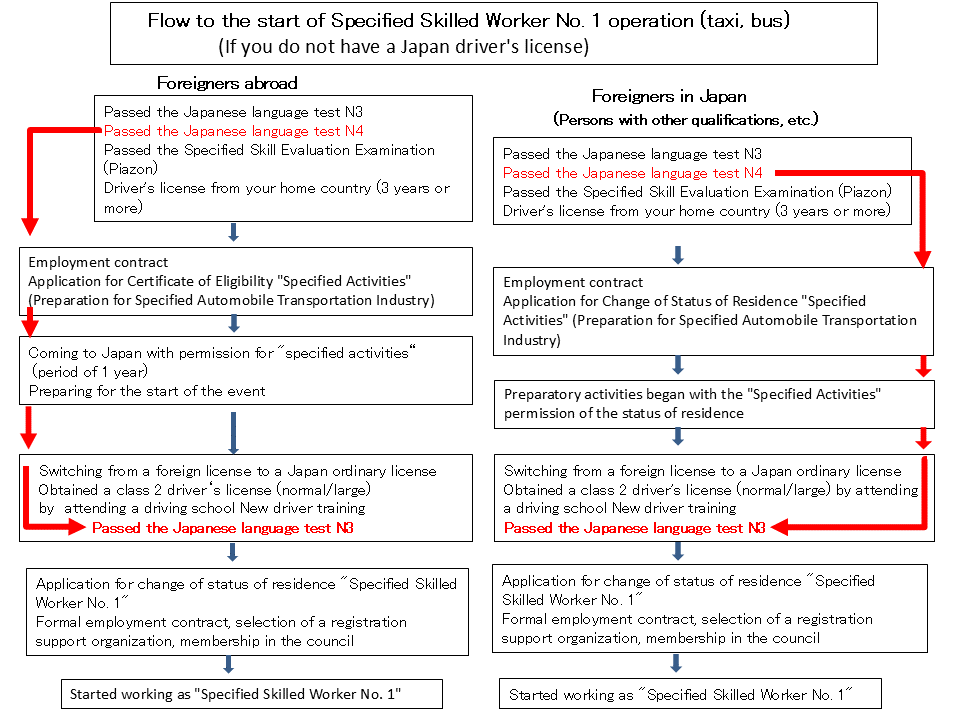 Fiow to the start of Specified Skilled Worker No1 operation(taxi,bus) |