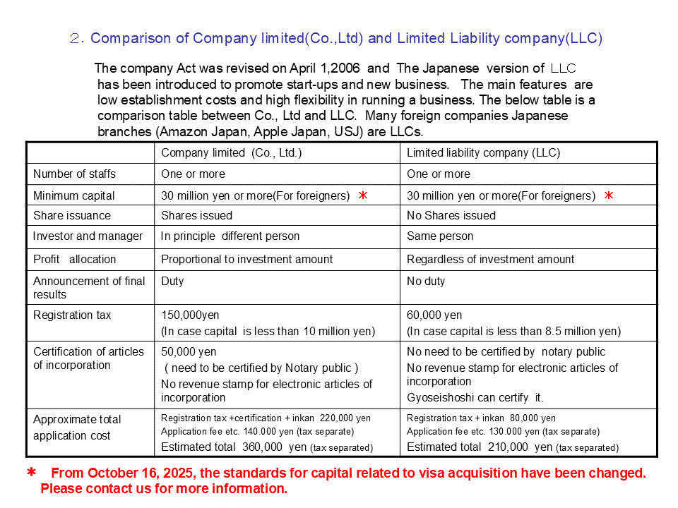 | 2. Comparison of Company Limited(Co.,Ltd) and Limited Liability company(LLC) |