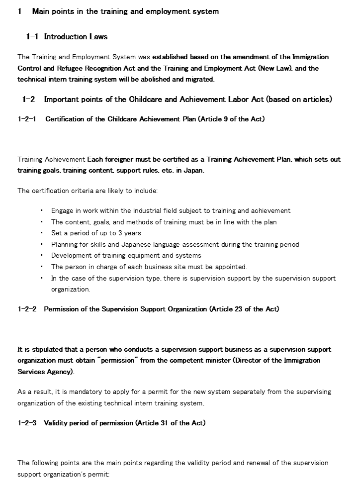 | Training and Achievement Labor System (Replacement of Technical Intern Training)