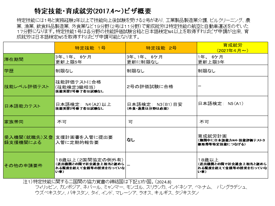 (Specified Skilled Worker Visa・Training and Employment Visa)