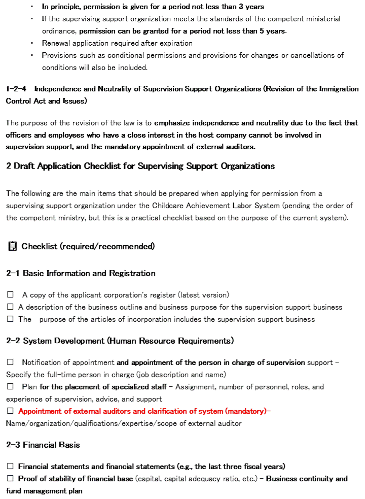 2 Supervision Support Organization Application Checklist (Draft)